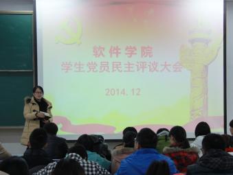 本次会议主要议程是党内对学生党员进行评议,要求学生党员客观、公平、公正依照评议标准对正式党员进行全面的评议。分团委李辉老师宣读了《软件学院学生党员管理制度》,并介绍党员评议的整个流程,指导党员填写民主评议表。 接下来,学生正式党员依次发言,从政治信仰、思想观念、学习表现、师生关系、服务同学、创新创业以及活动实践情况等方面进行自我总结和剖析,既总结了成绩,又找出了差距,更明确了努力方向。最后,与会党员本着实事求是和高度负责的态度,结合总结剖析和平时表现,依照评议标准对正式党员进行了客观、全面的评议,并客观中肯地向对其他同志提出了意见和建议。