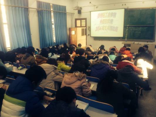 1218下午3点,外国语学院2014级英语专业全体学生在东二楼100教室成功举办英文书法比赛。本次活动旨在规范学生的英语书写,使学生养成良好的书写习惯,体会英语书法的魅力,提高人文素养。同学们以极大的热情和认真的态度参加了此次活动。