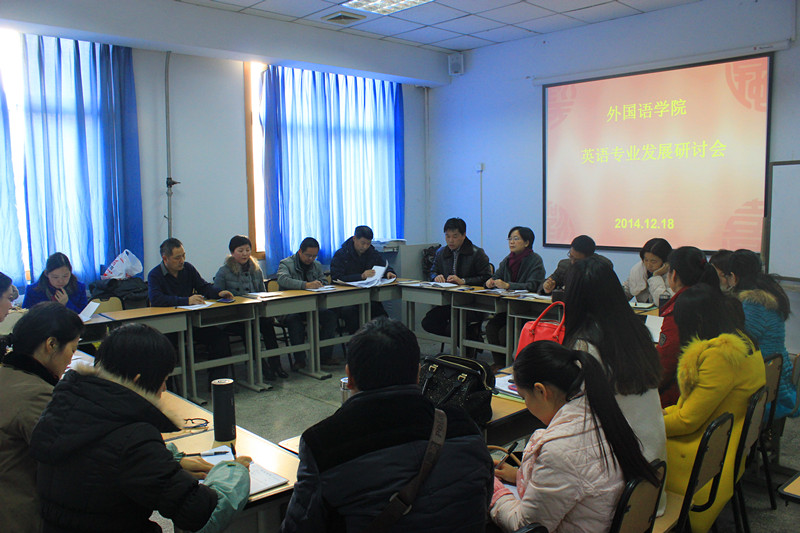 经过充分酝酿和准备,2014年12月18日下午外国语学院在东二楼409西教室成功召开了英语专业发展研讨会。外国语学院党政班子、英语专业负责人及英语专业全体教师参加了此次研讨会。会议由外国语学院副院长周麦成主持。
