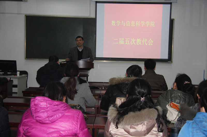 根据工会工作和教代会工作相关条例,1月5日下午,数学与信息科学学院在东一楼216室召开二届五次教职工代表大会。非正式代表的教授、博士应邀列席会议,大会由学院分工会主席张阳同志主持。