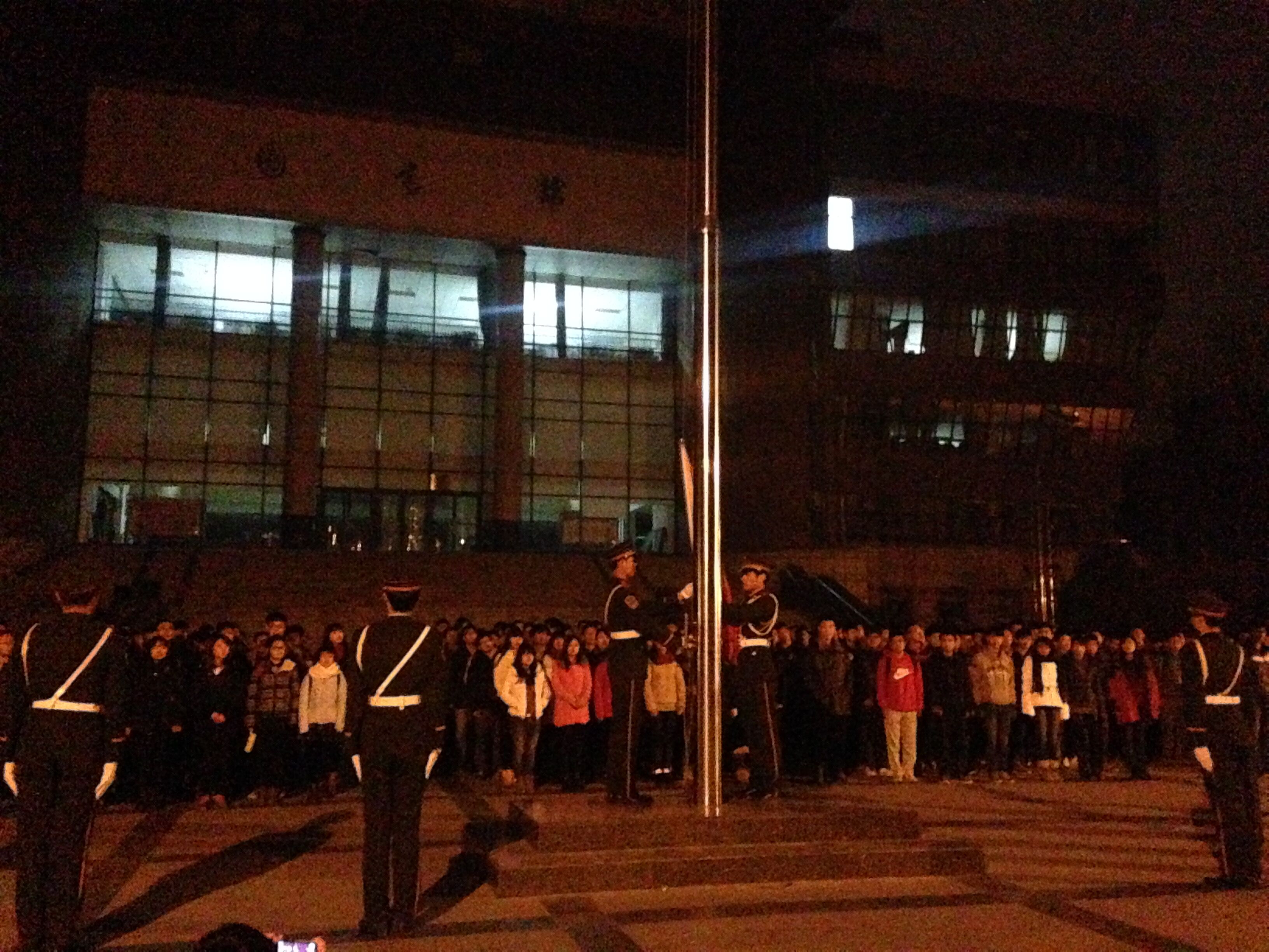 1月5日清晨,建筑环境工程学院、物理与电子工程学院在东风校区图书馆广场举行“勤奋学习,诚信考试”主题教育升国旗仪式,全体2013、2014级学生及分团委学生会、辅导员老师参加了此次活动。
