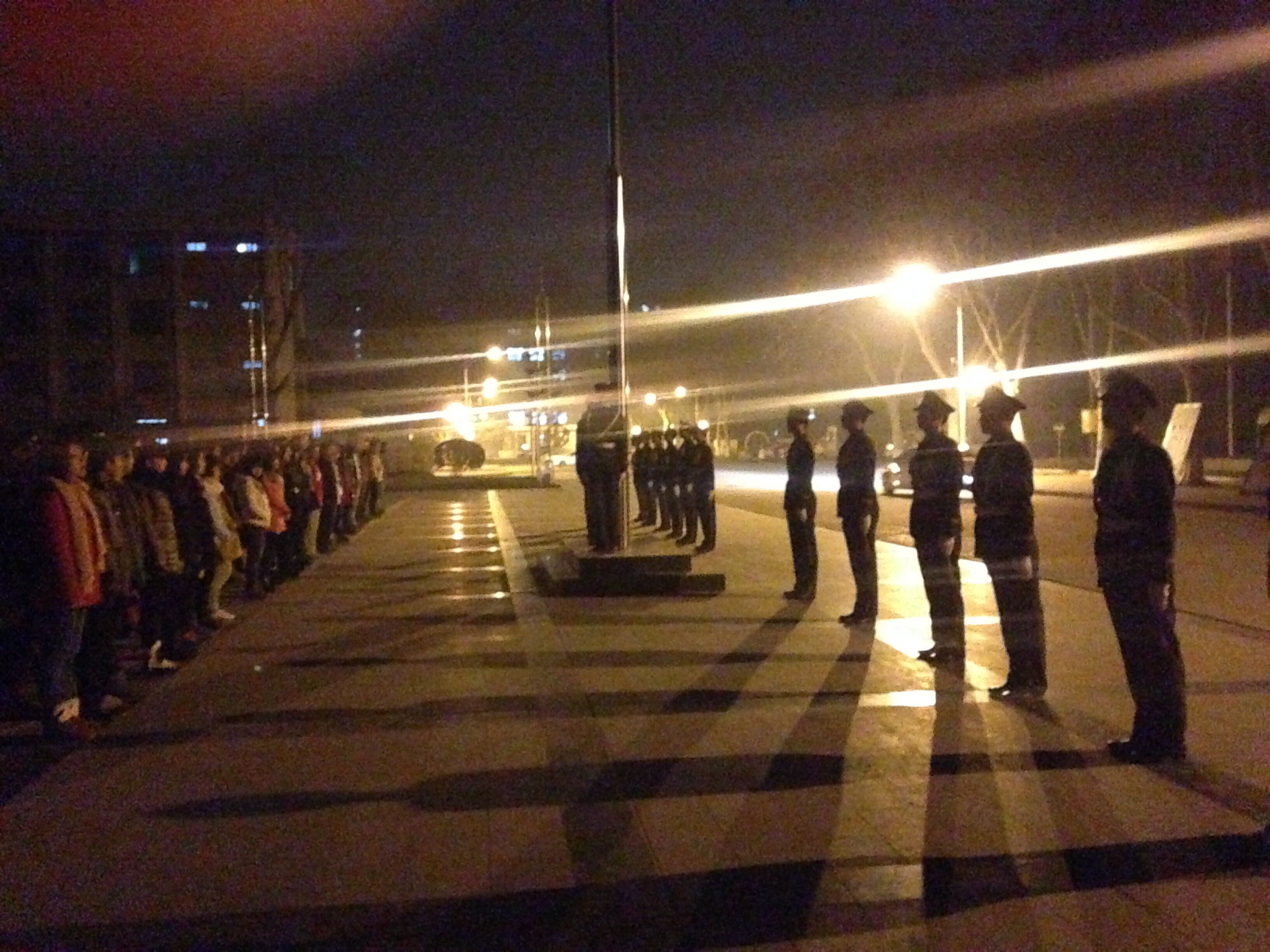 冒着冬日凛冽的寒风,国旗仪仗队迈着铿锵有力的步伐,昂首挺胸,护着鲜艳的五星红旗到达国旗台前。伴着庄严肃穆的《义勇军进行曲》,五星红旗冉冉升起,全体师生唱国歌、行注目礼,心潮澎湃、斗志昂扬。接着,学生代表进行了以“勤奋学习,诚信考试”为主题的国旗下的演讲,号召同学们从现在做起、从自身做起、小事做起,建诚实守信考风,筑光明磊落人格,自觉践行社会主义核心价值观,为实现伟大中国梦而努力奋斗!