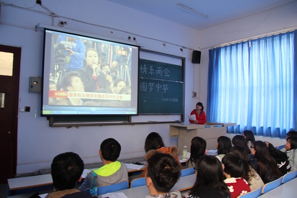 此次活动由视频学习、主题汇报与感悟分享三部分组成,现场气氛热烈。会议伊始,主持人向大家简要介绍了“四进四信”的含义及核心内容,并通过播放“两会”相关视频,积极引导同学们学习“两会”精神。在主题分享环节,同学们分别就大学生就业、教育均衡发展、环境保护、污染整治等民生热点进行了热烈讨论。在感悟分享环节,同学们积极参与,踊跃发言。同学一致认为,我们不仅要作“两会”的学习者,更要作践行者,倡议大家写美文传递正能量,多读书,关心时政,在微博微信原创或是转发身边的正能量,积极参与志愿者服务活动,帮助他人,温暖社会。