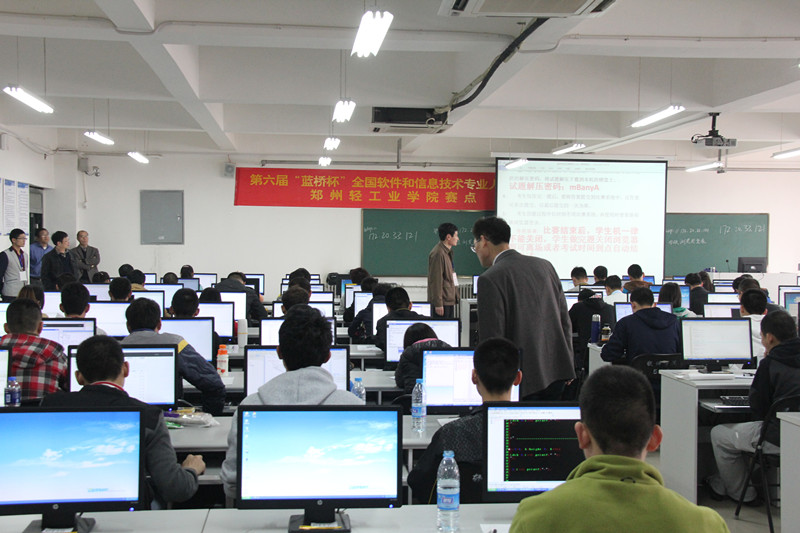 学校历来高度重视学生实践创新能力的培养,鼓励支持学生参加各种学科技能竞赛。教务处、工程训练中心和软件级学院通力合作,认真做好本次比赛的筹备工作。比赛过程中,教务处张东初处长、工程训练中心岳永胜主任以及软件学院张建伟院长、孙玉胜书记到现场进行了指导和巡视。竞赛分为java语言组和C语言组,持续四个小时。由于我校准备充分,服务周到,考务工作规范有序,得到了“蓝桥杯”大赛组委会、参赛考生及带队教师的一致赞扬。