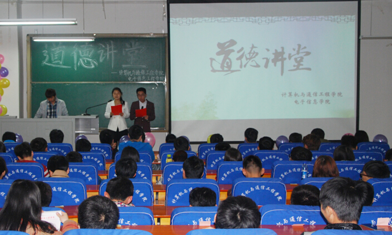 4月19日晚,计算机与通信工程学院(电子信息工程学院)在科学校区计算机楼217举行举办第二期“道德讲堂”活动,本次活动以“走进‘道德讲堂’,传递正能量”为主题,吸引了各班级近300名学生代表参加活动。