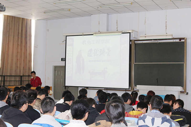为扎实推进精神文明建设,增强思想道德建设的吸引力和亲和力,4月16日中午,机电工程学院“道德讲堂”活动在教三楼301举行。