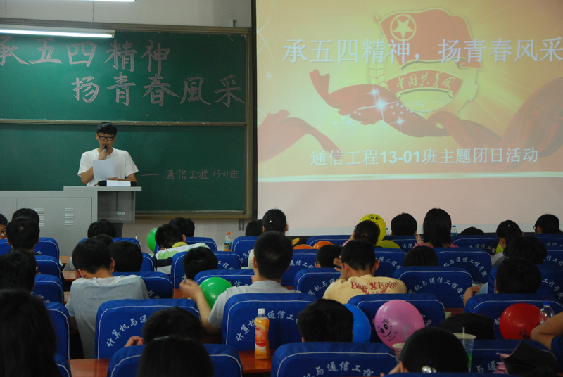 为纪念五四运动96周年,在五四青年节到来之际,按照上级团组织要求,计算机与通信工程学院(电子信息工程学院)分团委于428日中午在计算机楼217教室举办了以承五四精神,扬青春风采为主题的示范团日活动。