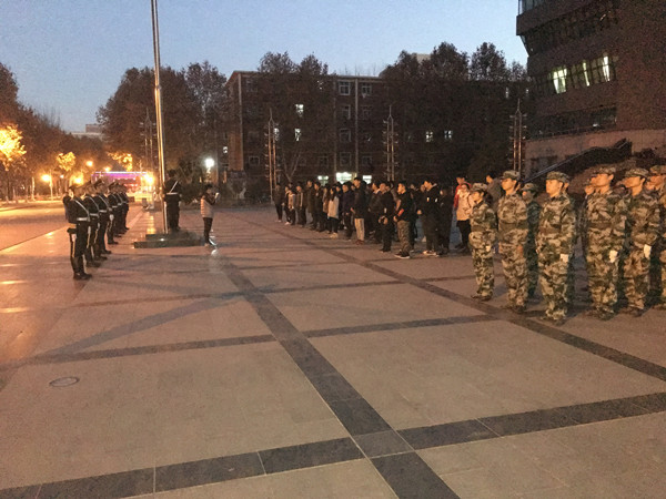 为激发同学们的爱国热情,重温历史,体育学院、外国语学院、数学与信息科学学院于12月11日早上在东风校区图书馆广场举行了“学习十九大纪念一二•九”主题升旗仪式。