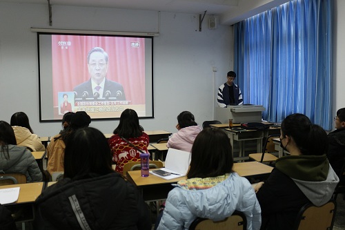 会议伊始,团学干部一起观看了第十三届全国人大一次会议开幕式,重点学习李克强同志代表国务院向大会作的政府工作报告,热议过去五年国家在政治、经济、文化、科技、民生等方面取得的巨大成就。同学们为祖国强大感到骄傲与自豪,也更坚定了不忘初心、继续奋斗的信念。会上,分团委书记刘振卫老师就2018年团学工作要点进行了梳理,号召团学干部带头坚定理想信念,争做新时代有为青年;带头刻苦学习,发挥榜样示范作用;带头争创佳绩,勇担青春使命;带头弘扬新风,践行社会主义核心价值观,踏实肯干,推动团学工作再上新台阶。