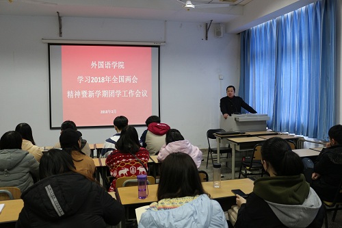 【思想引领】外国语学院召开学习全国两会精神暨新学期团学工作会议