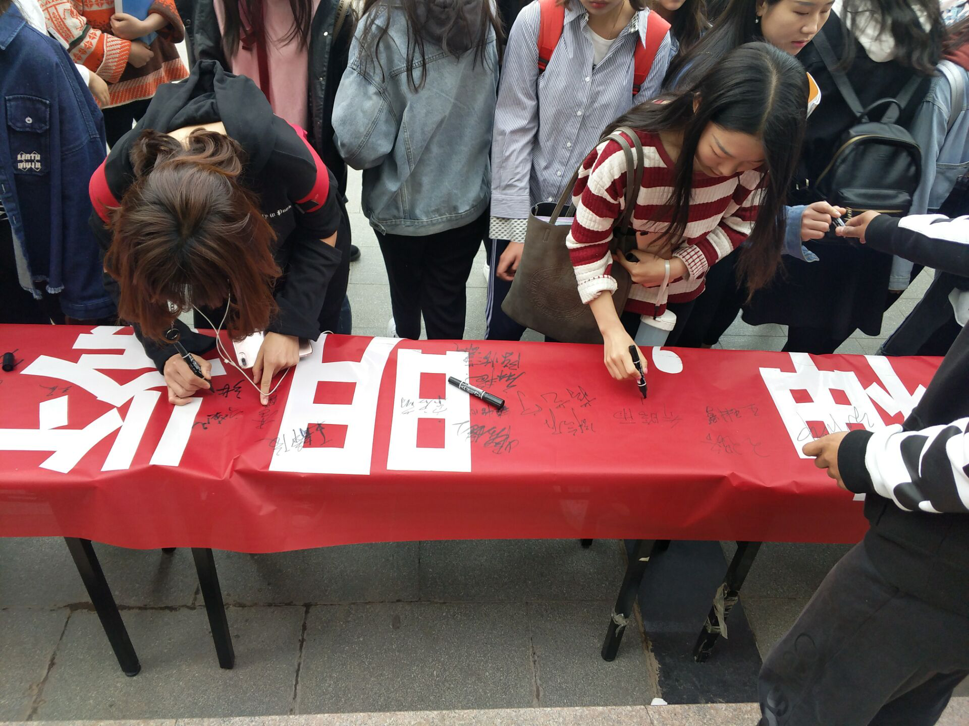 学生们于早上6:30陆续到场,按照指定位置站好,由各个班级负责人统计学生到场情况并负责签到记录。6:40升旗仪式正式开始,国旗护卫队队员出场迈着铿锵有力的步伐护送国旗入场,雄壮有力的《义勇军进行曲》响彻整个校园。随后,学生代表进行国旗下讲话,并呼吁大家要怀着饱满的热情以崭新的面貌来面对新的挑战,开启属于我们自己的新的征程。在活动结束后由工作人员以及负责人引导同学们到“学习两会精神,明鉴青年之志”条幅上签字,并在签字完毕之后有序离场。
