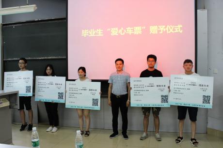 会上,学生处副处长赵灿鑫老师向家庭经济困难的毕业生赠送了返程“爱心车票”,并寄语同学们要正确看待不同生活境遇带给我们的磨难和锻炼,树立自立自强的精神品质,要相信遇到任何困难都可以通过国家资助政策、通过学校和老师的帮助得到解决,同时祝福受助毕业生乘坐着学校为大家提供的“豪车”,驶向人生幸福和事业成功的彼岸。