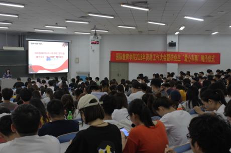 为进一步落实好学校关于国家资助政策宣传到位、大力推进精准资助的工作要求,发挥励志自强毕业生和诚信优秀毕业生的示范引领作用,激励广大受助学生奋发自强、诚信感恩,国际教育学院于6月19日中午隆重召开“助学·筑梦·铸人”2018年资助工作大会暨毕业生“爱心车票”赠予仪式。学生处副处长赵灿鑫老师、党总支副书记李锐杰老师、全体辅导员老师以及各年级受资助学生共300余人参加了会议。