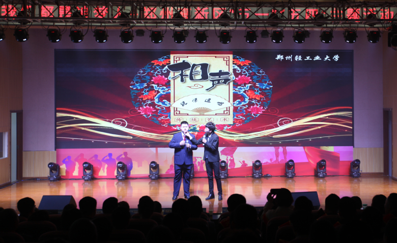 在表彰大会上,软件学院尚守信和政法学院王广元与郑州市第58中学刘含梦等30人共获郑州市高新区2018年优秀共青团员荣誉称号。我校艺术团学生带来的相声表演是《疯狂主播》,通过对最近流行的网络主播们为了出名对传统文化的曲解进行讽刺,为中国传统文化正名,让观众在欣赏传统文化的过程中带来一些思考。