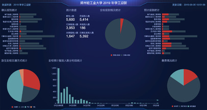 学校建设了迎新实时统计大屏和手机迎新数据统计服务,各级部门工作人员可随时了解全校和各院系新生报到人数、比例等各种信息,全局状态一目了然。