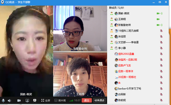 为进一步加强学生干部队伍建设,增强广大学子共克时艰、战胜疫情的信心和决心,推进新学期各项工作平稳有序进行,9月2日下午,数学与信息科学学院以线上形式召开网络工作视频会议,学院党委副书记王燕翔、团委书记张智勤、学工办主任韩笑及所有学生干部参加了会议。