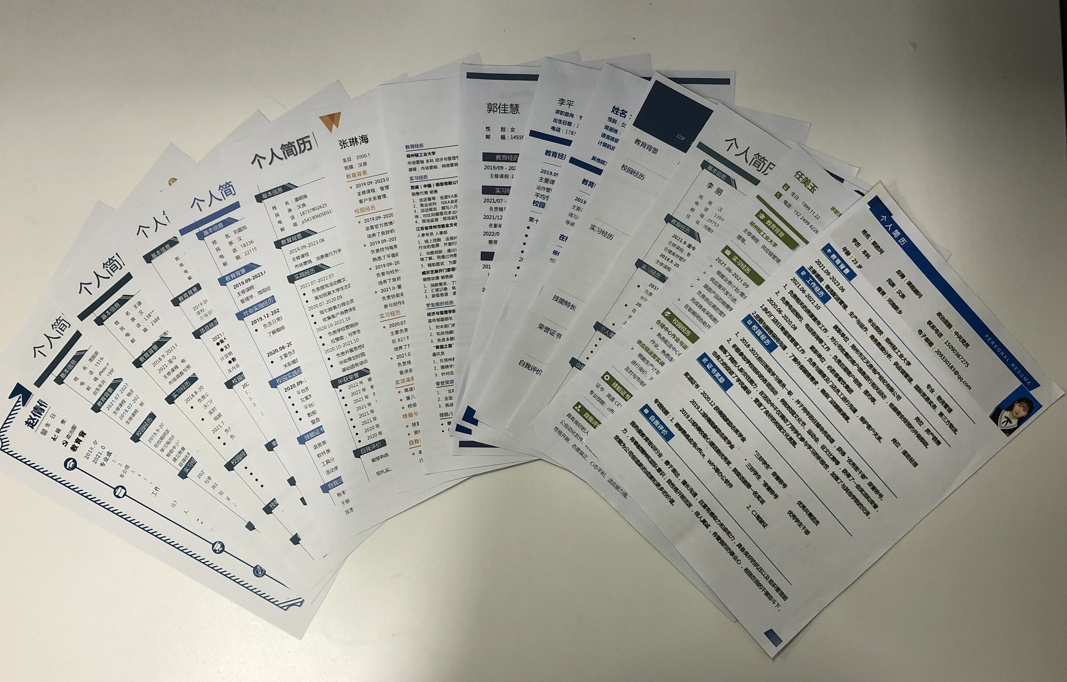 学院简历设计制作大赛通过班会、海报、QQ群、微信群等多种方式的前期宣传动员,鼓励同学们积极参加,收到参赛作品共1000余份。参赛选手简历制作简洁明了,具有一定的共性,能用较为具体的表达方式叙述自己的实践经历及收获,同时,参赛选手根据不同公司不同岗位呈现不同的简历风格,设计别致,思路独具匠心。经过严格评审,共评选出一等奖6名,二等奖8名,三等奖10名,优秀奖20名。比赛结束后,学院通过不同方式对获奖优秀简历作品进行展示,供同学们学习观摩,交流借鉴。