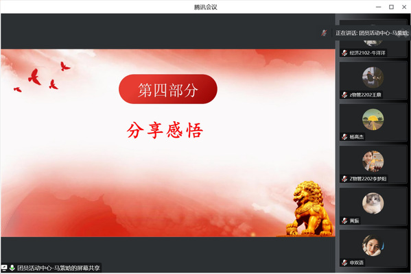 本次团课活动共分为四个部分:一是深化党史学习,助力民族复兴;二是发扬历史主动精神,乘势而上,砥砺前行;三是以实际行动践行党的二十大精神;四是分享感悟。会议伊始,主持人带领同学们从中国共产党成立时期、南昌起义-八七会议-秋收起义时期、开始全面建设社会主义时期、社会主义现代化建设时期学习了中国共产党的发展历程,领悟共产党人的初心和使命,汲取前进动力。接着同学们学习历史主动精神,充分理解了历史主动精神的必要性与重要意义。然后通过学习吴家园社区切实为群众办实事的事例,同学们深刻认识到青年要从“坚定理想信念”、“练就过硬本领”、“扛起责任担当”三个方面践行党的二十大精神。活动最后,夏惠佳、蓝秋秋两位同学分享了自己的感悟:新时代青年学子将以青春之名,继续学习党的二十大精神,不负韶华、不负时代,在青春的赛道上奋力奔跑。同学们认真倾听,吸取经验。至此,本次活动圆满结束。