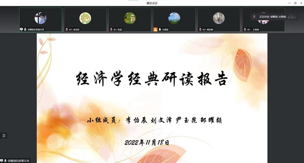在第一周开展的《经济学经典研读》活动中,在宋勇超、裴卫旗老师的带领下,学生深入研读了经济学经典著作,并进行了分组汇报。本环节提高了同学们的思想境界和认知水平,深化了对于经济学经典著作的了解,同学们都表示受益匪浅。