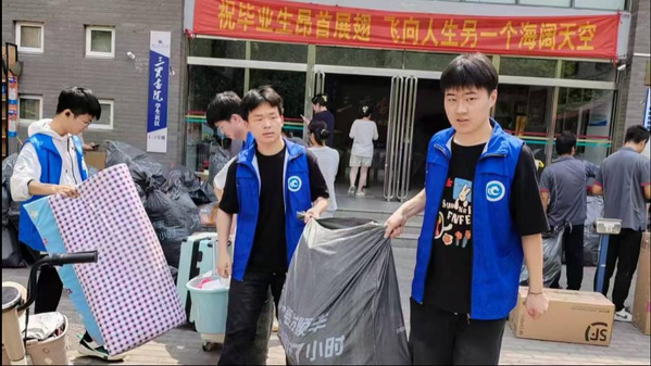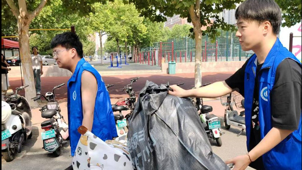 活动当日,志愿者们分工协作,有的深入宿舍帮毕业生细心整理打包衣物书籍,将四年时光的纪念小心归置;有的化身“搬运能手”,将装满回忆的行李箱、包裹运送至校门口;还有的在校园道路上引导运输车辆,协调路线让行李转运顺畅有序。尽管烈日炎炎,汗水浸透衣衫,志愿者们用默契的配合和利落的行动,让毕业行李搬运的忙碌里,充满青春互助的温度。
