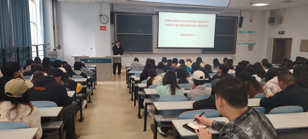 会议伊始,就业专职教师对当前就业形势进行了系统分析,指出行业发展趋势及用人单位的需求。引导同学们要保持积极的就业态度,充分利用学校提供的各项就业资源,为职业生涯规划打好基础。随后,老师们又讲解了应届生与往届生身份的区别与优势,帮助同学们更清晰地认知自身在就业市场中的定位,详细解读了毕业生就业推荐表、普通高校毕业生就业协议书等重要文件的填写与使用方法,解答了实际操作中的常见问题。辅导员孙丰老师则聚焦创新创业学分的获取办法,逐项说明相关要求与流程并解答同学们的疑问,强调完成一定学分是顺利毕业的关键,鼓励同学们积极参与创新创业活动,以提升综合素质与就业竞争力。周晓浩老师对毕业生管理规定进行了强调,提醒大家遵守校纪校规,确保顺利完成学业与毕业程序。在互动环节中,大家积极提问,老师们耐心解答现实问题,现场气氛热烈,收获颇丰。