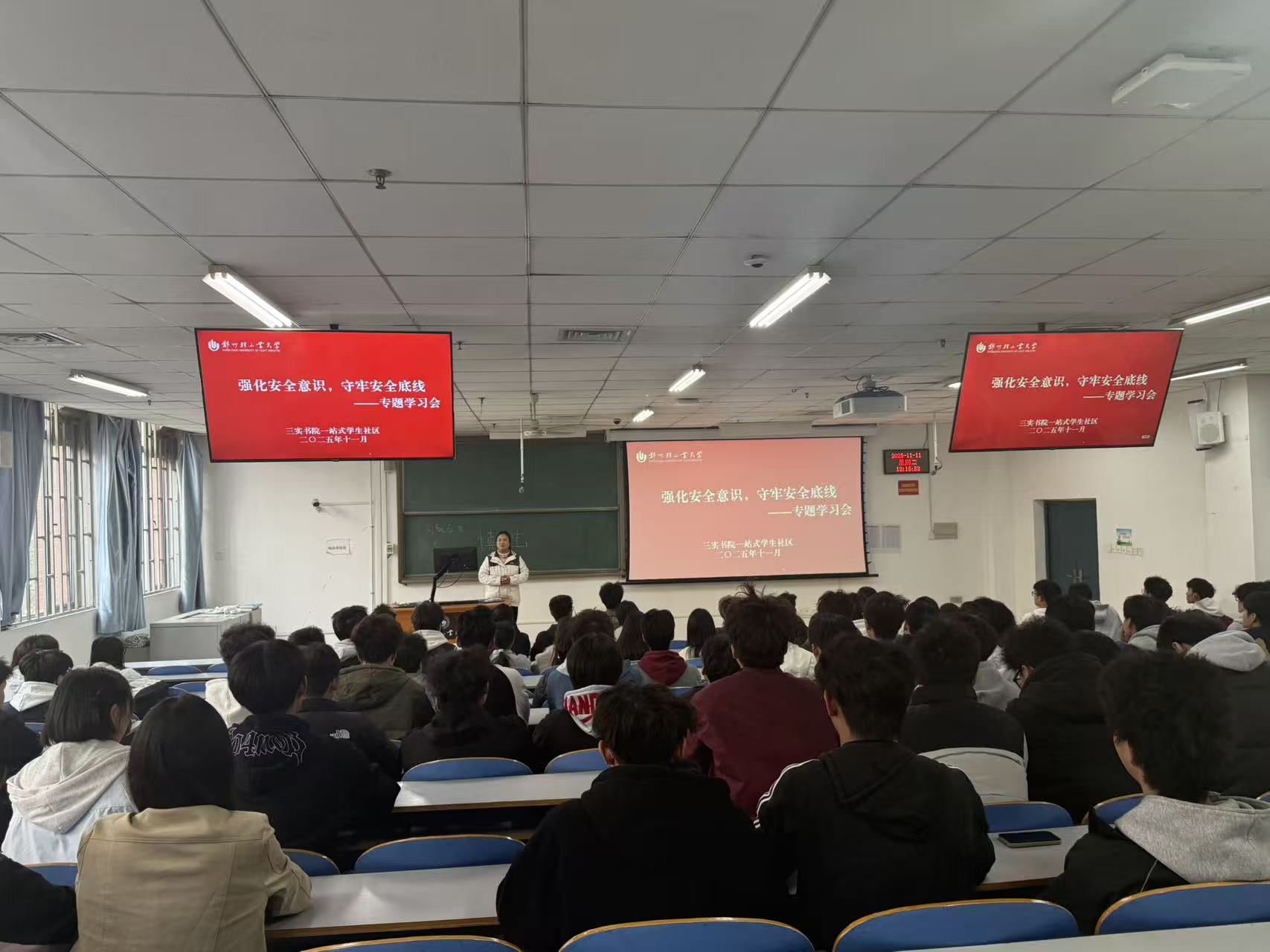 为强化学生安全防范意识,将安全教育、思想引领融入日常,近日,三实书院“一站式”学生社区组织开展“强化安全意识,守牢安全底线”专题学习会,此次活动由体育学院承办,社区100余名学生分批参加会议。