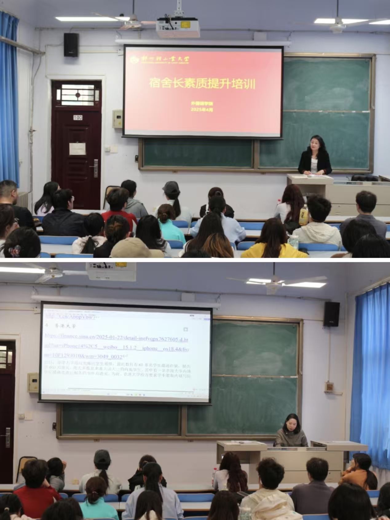 为切实加强学生宿舍管理,提升宿舍长队伍综合素质,近日,春华苑“一站式”学生社区在东二楼100开展宿舍长素质提升培训会,外国语学院党委副书记马宇、全体辅导员、宿舍长及学生骨干代表参与培训。
