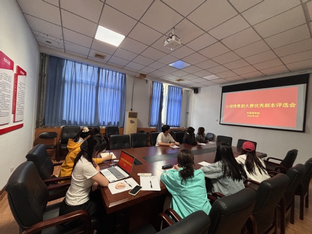 为扎实推进学院心理健康教育工作,切实提升学生心理健康素养,近期,外国语学院在东二楼227会议室组织开展心理情景剧大赛院级优秀剧本评选会,学院心理健康教育工作专职辅导员魏冉及心理部成员参加了此次会议。