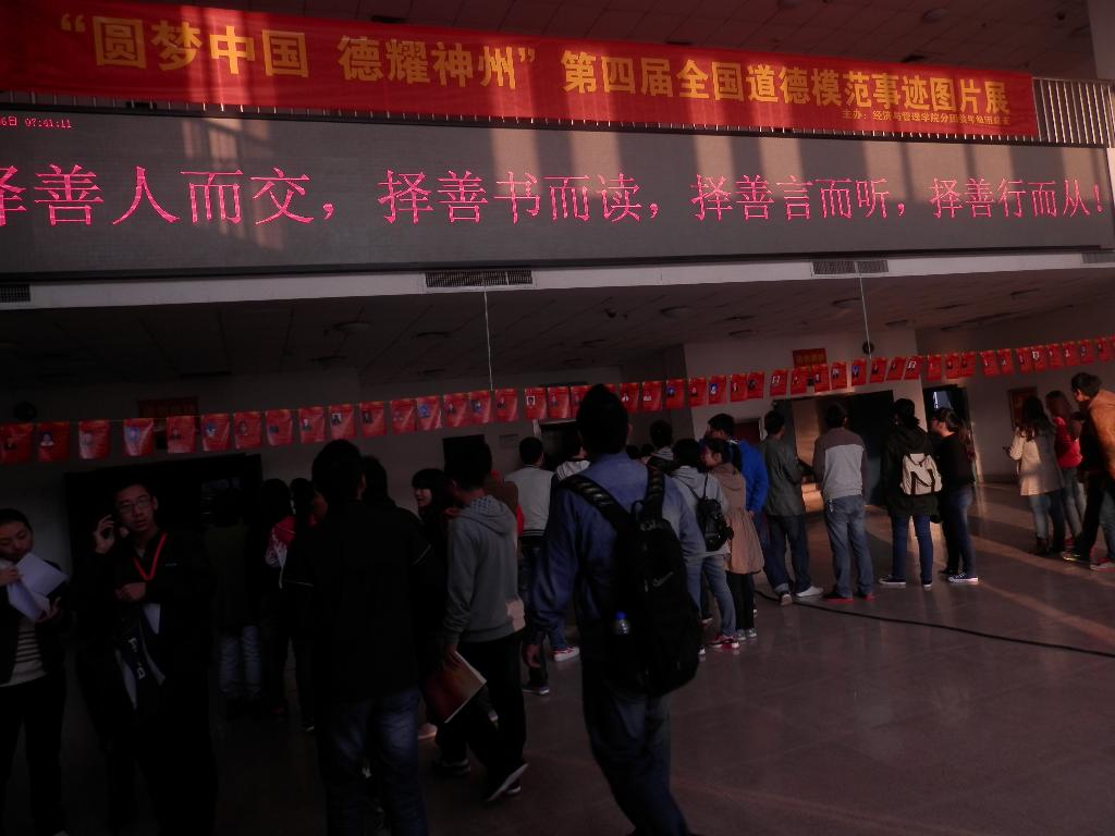 为引导大学生崇德向善,争当道德模范,进一步形成“做好事,存好心,做好人”的良好风尚,营造文明和谐校园环境,11月初,经济与管理学院在科学校区三教楼内开展了“全国道德模范先进事迹”图片展,受到了广大师生一致好评。