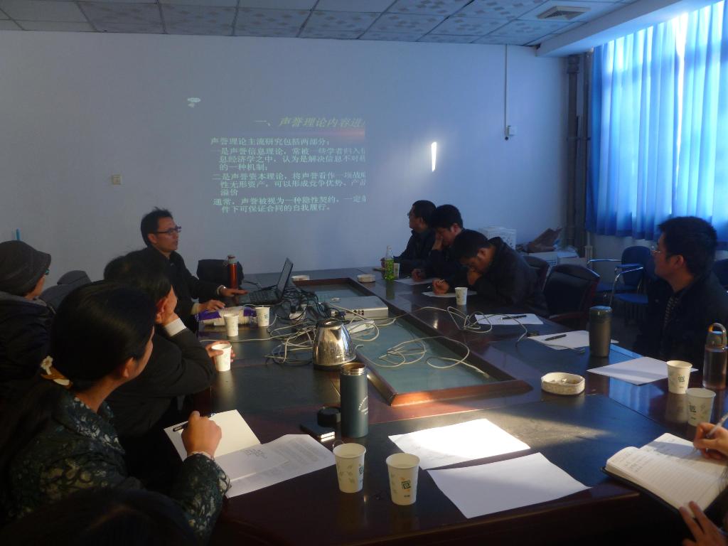11月14日下午2:30-4:30,经济与管理学院符加林博士在东风校区东二楼205室做了题为“声誉机制:研究进展与实践述评”的学术报告,相关专业教师和学生参加了此次报告会。 符加林博士介绍了声誉理论的研究进展,就声誉形成、驱动因素、结构维度、声誉测评及声誉作用机制做了详细的报告;并就声誉机制在网络营销、品牌创建、人力资源管理、资本市场、产业联盟和协同创新中的应用进行了探讨和展望。最后,符加林博士和与会老师一起就学科方向的凝炼、学科团队建设和国家自科基金和社科基金的选题进行了充分的讨论和交流。报告在轻松愉快的氛围中结束。