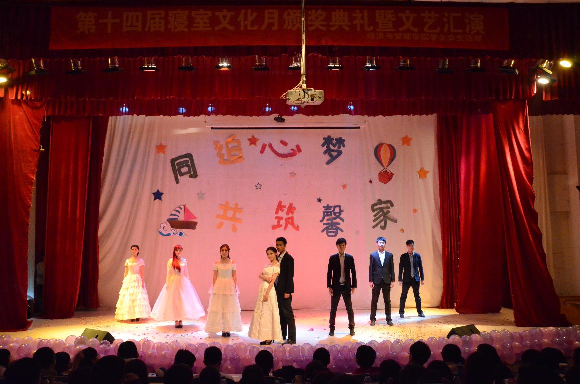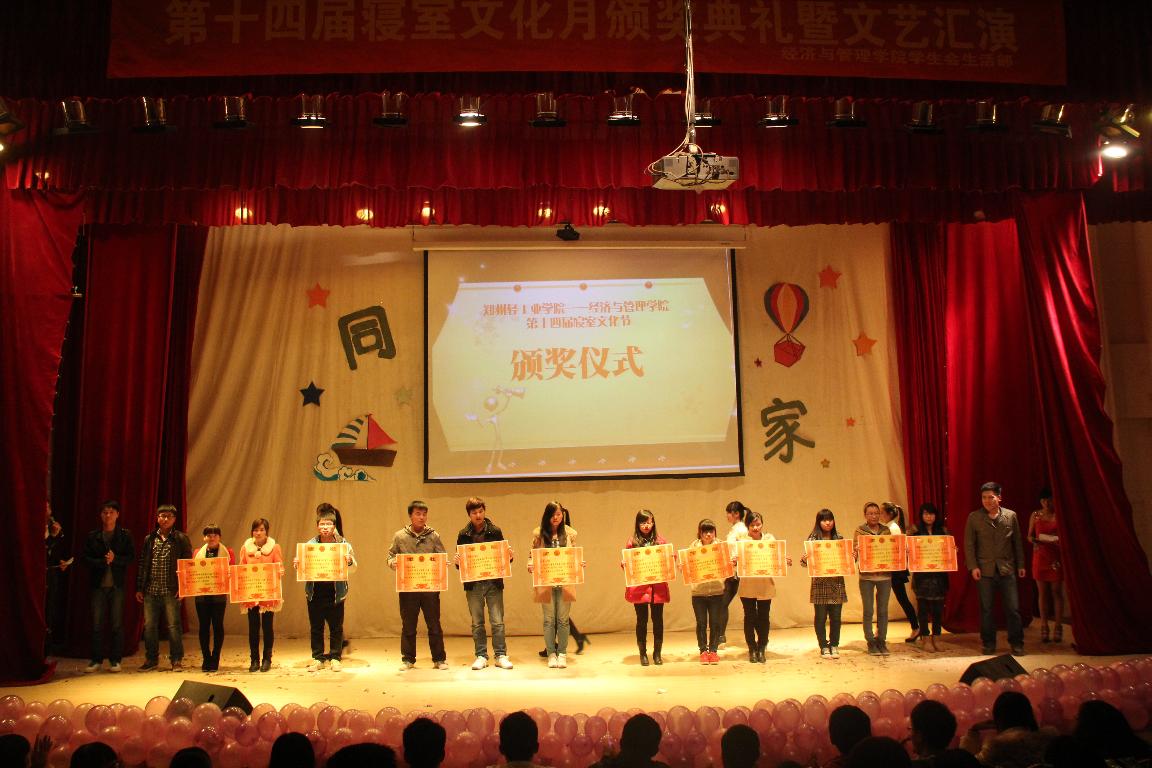 12月3日晚7:00,经济与管理学院在科学校区三教楼208隆重举行了第十四届“寝室文化月”颁奖典礼暨文艺汇演。经济与管理学院部分专兼职辅导员以及2013级全体新生共同观看了演出。