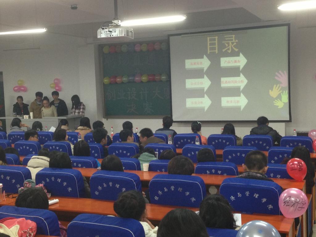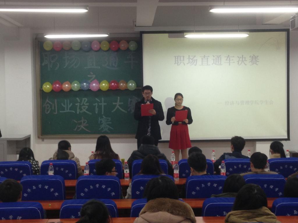 为培养广大学生的创新精神和创业能力,增强团队合作精神,提高大学生创业技能,12月8日晚,经济与管理学院在我校科学校区经管楼211举办了职场直通车之“创业设计大赛”。