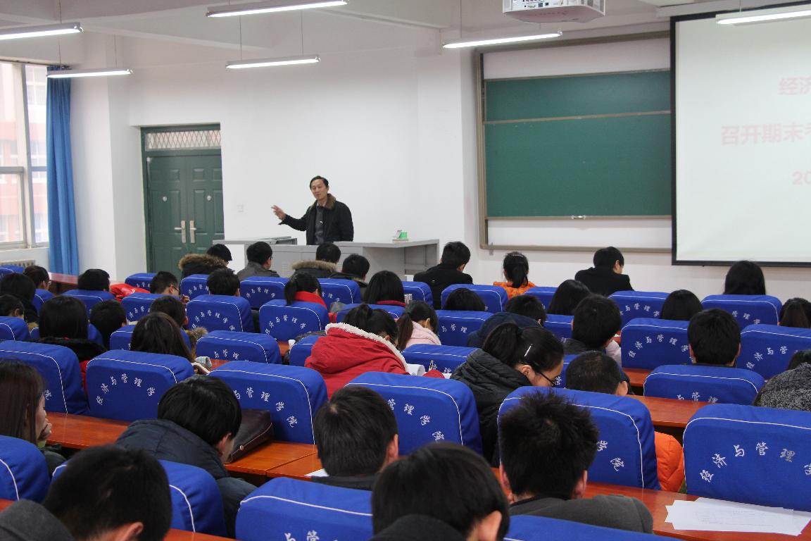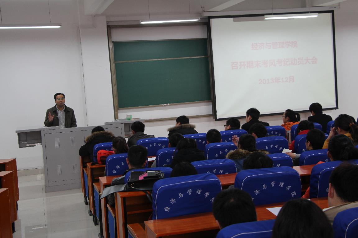 为进一步推进学风建设、严肃考风考纪,营造良好的诚信考试氛围,12月17日中午,经济与管理学院在经管楼211召开期末考风考纪动员大会。经济与管理学院党总支书记孙向东、副书记刘洪民、部分专兼职辅导员以及我院各班班长、团支书、学生会、年级团总支成员参加了此次大会。