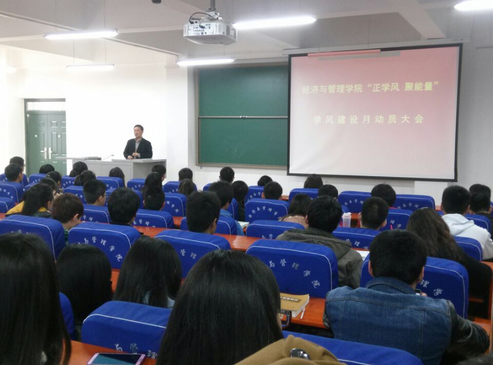 为贯彻落实我校《关于开展“正学风聚能量”学风建设活动的通知》精神,探索建立我院优良学风的长效机制,营造勤奋求实、严谨治学、好学上进的学习氛围和学习风气,3月19日,经济与管理学院在经管楼211召开了“正学风聚能量”学风建设月动员大会。我院副院长周广亮、部分专兼职辅导员、学生会学习部、纪检部、生活部全体成员以及各班班长、团支书、学习委员、学生代表参加了会议。会议由分团委书记陈章美主持。