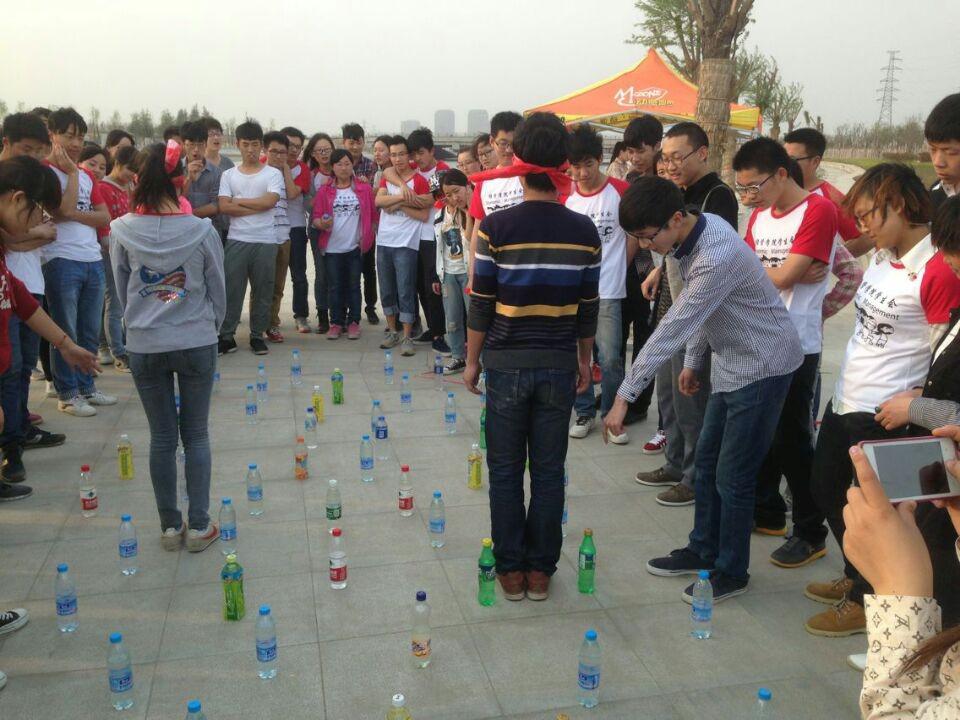 本次素质拓展训练主要包括三项拓展项目:“萝卜蹲”、“地雷阵”和“袋鼠赛跑”。“萝卜蹲”:主要将参与者分成四组,每组人手牵着手围成一圈,每堆人以颜色命名,任意指定一堆萝卜开始统一下蹲,同时还要念词,再指定别的萝卜堆做同样动作。这项训练不仅考验了大家的记忆能力,还考验了大家的反应速度,为同学们带来了无限的乐趣。“地雷阵”:让每个队员找一个自己的搭档,给每对搭档发一块蒙眼布,每队搭档中要有给一个人蒙上眼睛,眼睛蒙好之后,可以布置地雷阵,划分区域,找一个起点和终点。这项训练主要增强成员之间相互信任、沟通与交流的重要性。“袋鼠赛跑”:每队搭档一人站在起点,一个人站在终点,由起点的那个同学先跑,跑的时候要把气球放在膝盖之间,放好之后不能用手去碰,要像袋鼠一样跳到终点,并且保证气球不能掉,跑到终点时候把气球给另一个人,交换之后由另一个搭档夹着气球跳到起点。这项训练主要培养团队的合作精神。