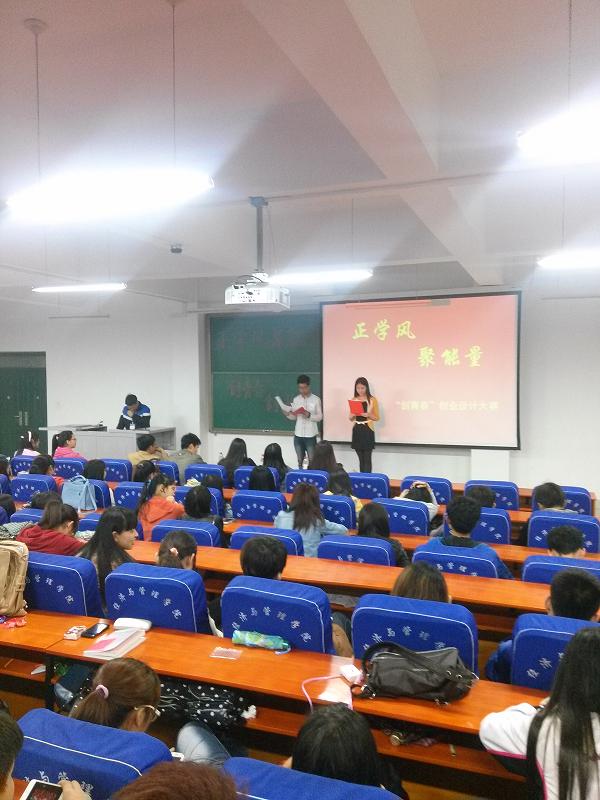 为全面推进大学生素质拓展计划,引导在校大学生树立创新意识、培养创新思维、弘扬创业精神,提高大学生就业竞争能力和创业能力,大力营造有利于学生健康成长和科技创新的良好氛围,4月11日,经济与管理学院举办“正学风聚能量”学风建设活动----“创青春”大学生创业大赛。