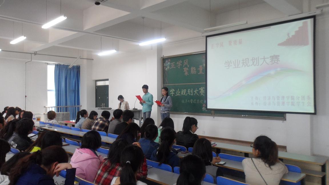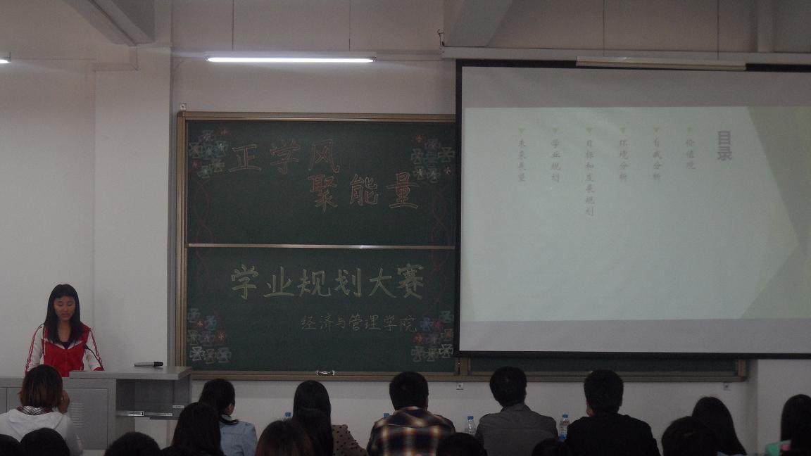 为鼓励广大学生尽快确立恰当的大学学业目标和职业理想,合理高效地利用时间,增强自身综合素质,成功度过大学美好的时光,4月17日下午,经济与管理学院在经管楼309举办了“正学风聚能量”学风建设活动——学业规划大赛。