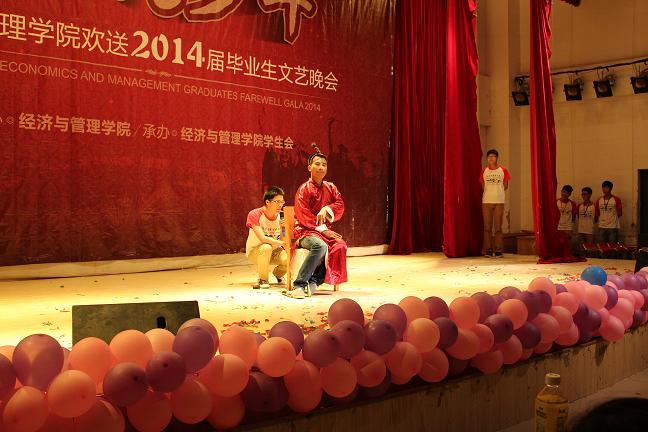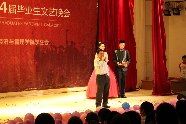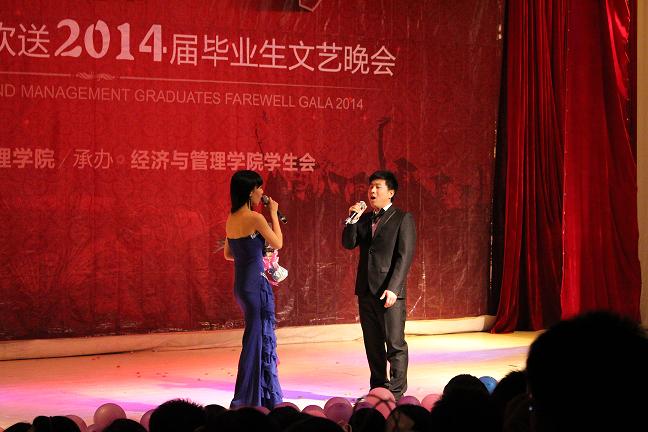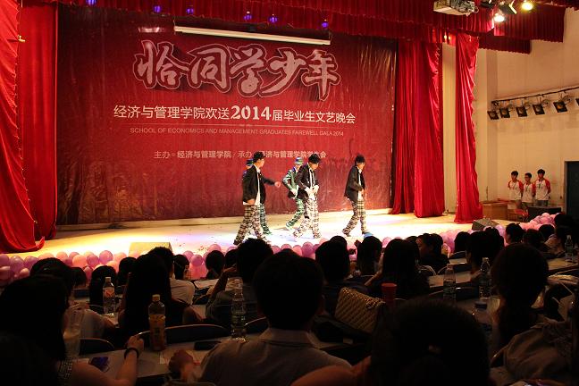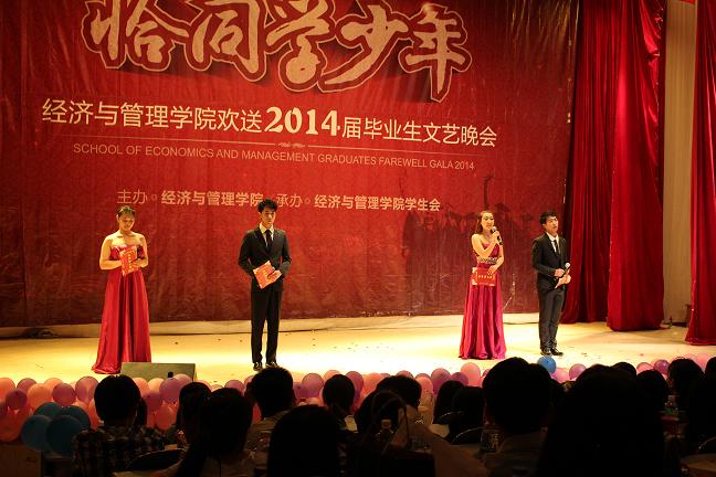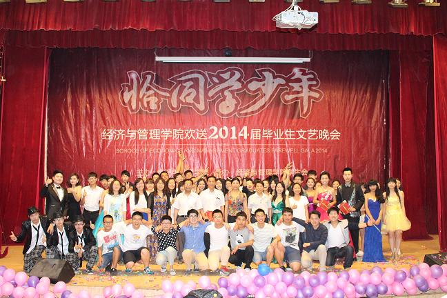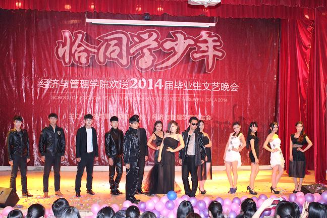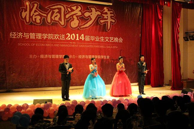 5月26日晚7:00,经济与管理学院在我校科学校区三教楼208成功举办了欢送2014届毕业生“恰同学少年”文艺晚会。经济与管理学院领导班子成员、全体专兼职辅导员以及我院毕业生共700余人观看了演出。