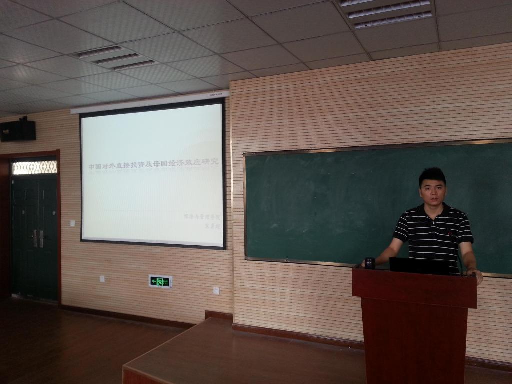 6月12日上午9:00,经济与管理学院宋勇超博士在科学校区经管楼311教室做了题为“中国对外直接投资及经济效应研究”的学术报告,相关专业教师和学生参加了此次报告会。