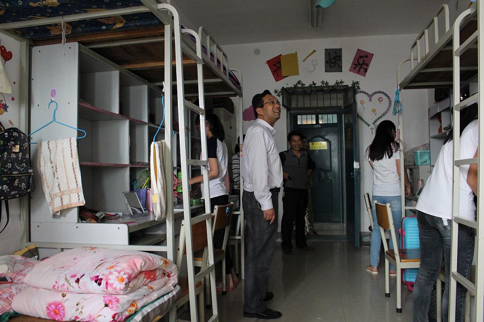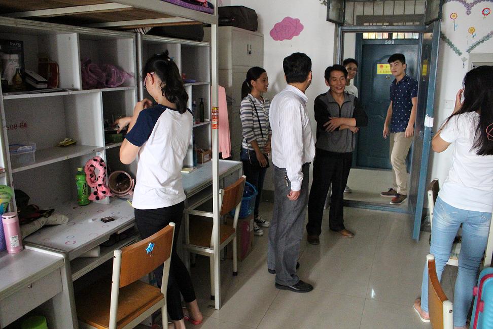 在走访的过程中,刘书记每走进一个学生宿舍就用电安全、卫生、物品存放、宿舍人文环境等都仔细查看,并对需要改进的地方提出了具体要求。同时,他与宿舍同学进行了亲切交谈,详细了解他们的思想动态、学习情况、生活习惯等,希望同学们要珍惜同学友谊,互相帮助、互相包容、互相尊重,共同营造一个良好的寝室文化氛围;要自觉遵守学校宿舍管理规定,禁止私拉电线和违章使用电器,提高安全意识;要自觉遵守我校学生精神文明建设“十要”、“十不”规定,切实提高自身修养。