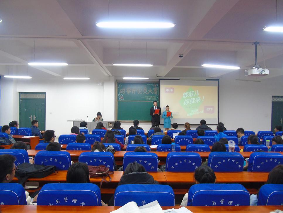 为加强对大学生的思想政治教育,激发其爱国热情,倡导广大青年学生关注时事,11月25日,经济与管理学院在经管楼211举办了纪念“一二·九”运动79周年系列活动之时事评论员大赛。