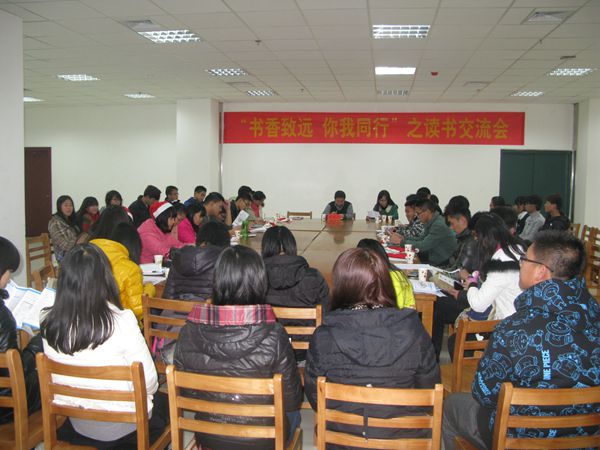 12月25日下午,郑州轻工业学院科学校区“书香致远,你我同行”读书交流会在逸夫图书馆二楼休闲区举办。图书馆副馆长吴起立、图书馆老师代表、读书协会及部分学生代表参加了交流会。