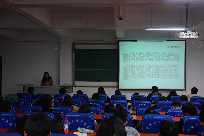 为了巩固寒假社会实践活动的成果,进一步交流经验、心得和体会,不断提高大学生的实践能力和创新意识,3月15日,经济与管理学院在经管楼211举办了“寒假归来话实践”报告会。