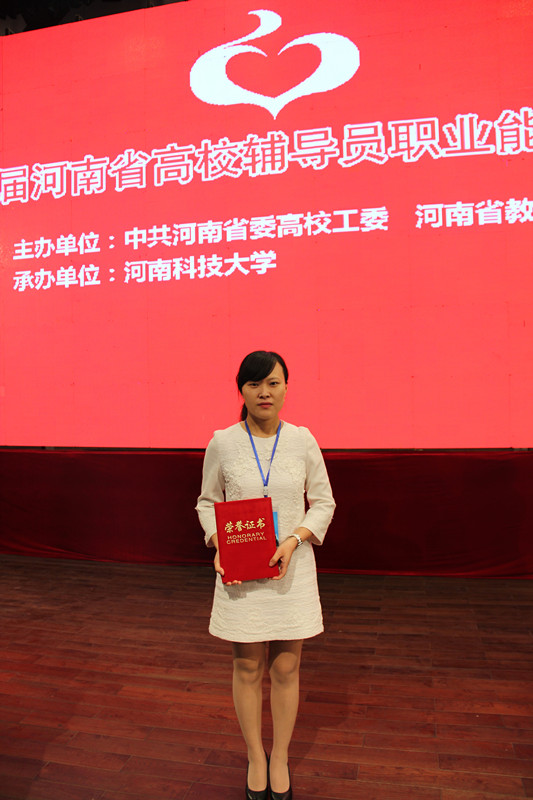 3月26日,河南省第四届辅导员职业能力大赛在河南科技大学落下帷幕,本次大赛由河南省高校工委、河南省教育厅主办。来自全省96所高校106名辅导员参加了本次大赛。软件学院辅导员方娜获得三等奖,我校获得优秀组织奖。