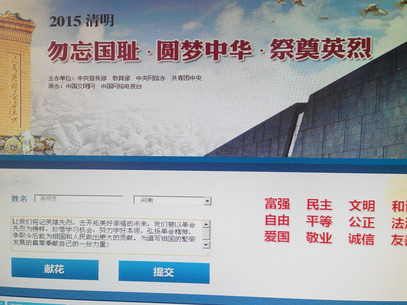 为弘扬中华民族优秀传统文化,引导我院学生慎终追远、缅怀先辈,铭记革命先烈光荣事迹,倍加珍惜今天幸福生活,值清明节来临之际,数学与信息学院组织了“勿忘国耻、圆梦中华、祭奠英烈”网上祭先烈活动。