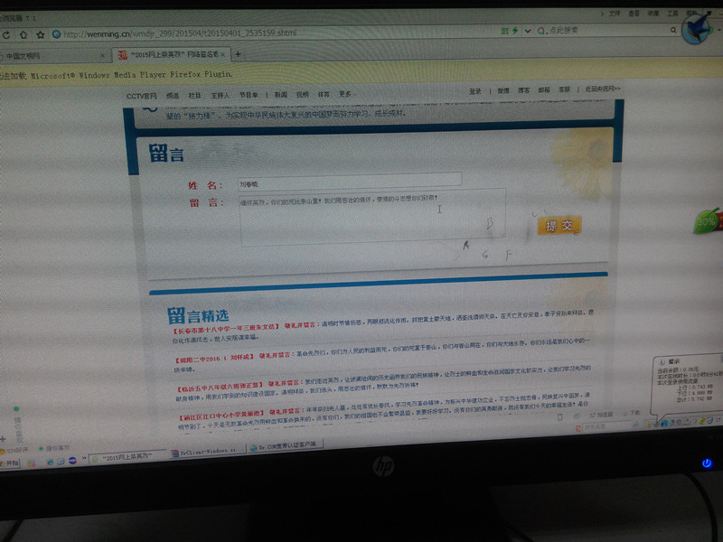 活动以网络签名寄语为载体,组织全院学生登录中国文明网,了解民族传统文化、学习祖国历史、学习英模事迹,在网上向先贤先烈鞠躬献花、抒写感言寄语,撰写感言体会。活动中,各专业班级积极行动,组织学生利用课余时间进行网上祭奠。通过组织参加活动,引导他们缅怀革命先烈、继承光荣传统,增强心向党的意识,激发爱国主义情感,树立中国特色社会主义共同理想和共产主义远大理想,立志投身实现“中国梦”的伟大实践。学习懂得国家好、民族好、大家才会好的道理,不断增进热爱祖国、热爱人民、热爱中华民族的情感,立志为实现中华民族伟大复兴“中国梦”而努力学习、成长成才。