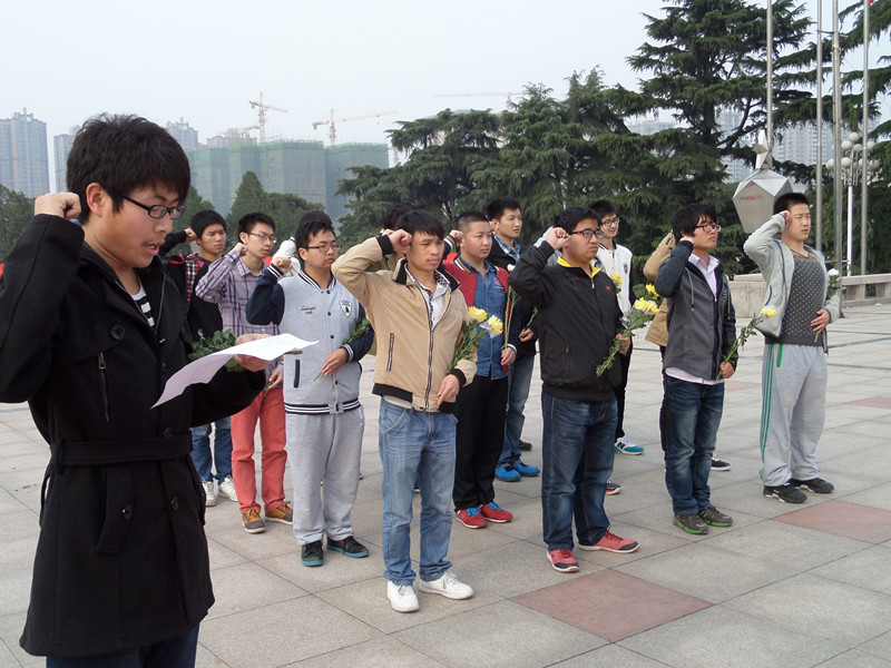 同学们首先来到庄严宏伟的革命烈士纪念碑前,默哀悼念、鞠躬致意、敬献鲜花,表达对先烈们无限的怀念和敬仰。随后,同学们参观了烈士事迹陈列馆,学习了吉鸿昌、杨靖宇等烈士英勇战斗、壮烈牺牲的光辉事迹,了解了老一辈无产阶级革命家和共产党人为中华民族的解放事业所做出的杰出贡献。战争的年代照就了烈士们的勇敢与坚强,和平美好的环境为我们提供了学知识、长才能、为祖国奉献的机会,同学们在烈士墓前进行了庄严宣誓:要传承先烈的伟大精神,弘扬不朽的民族精神,努力学习,积极进取,为祖国建设做出自己的贡献。