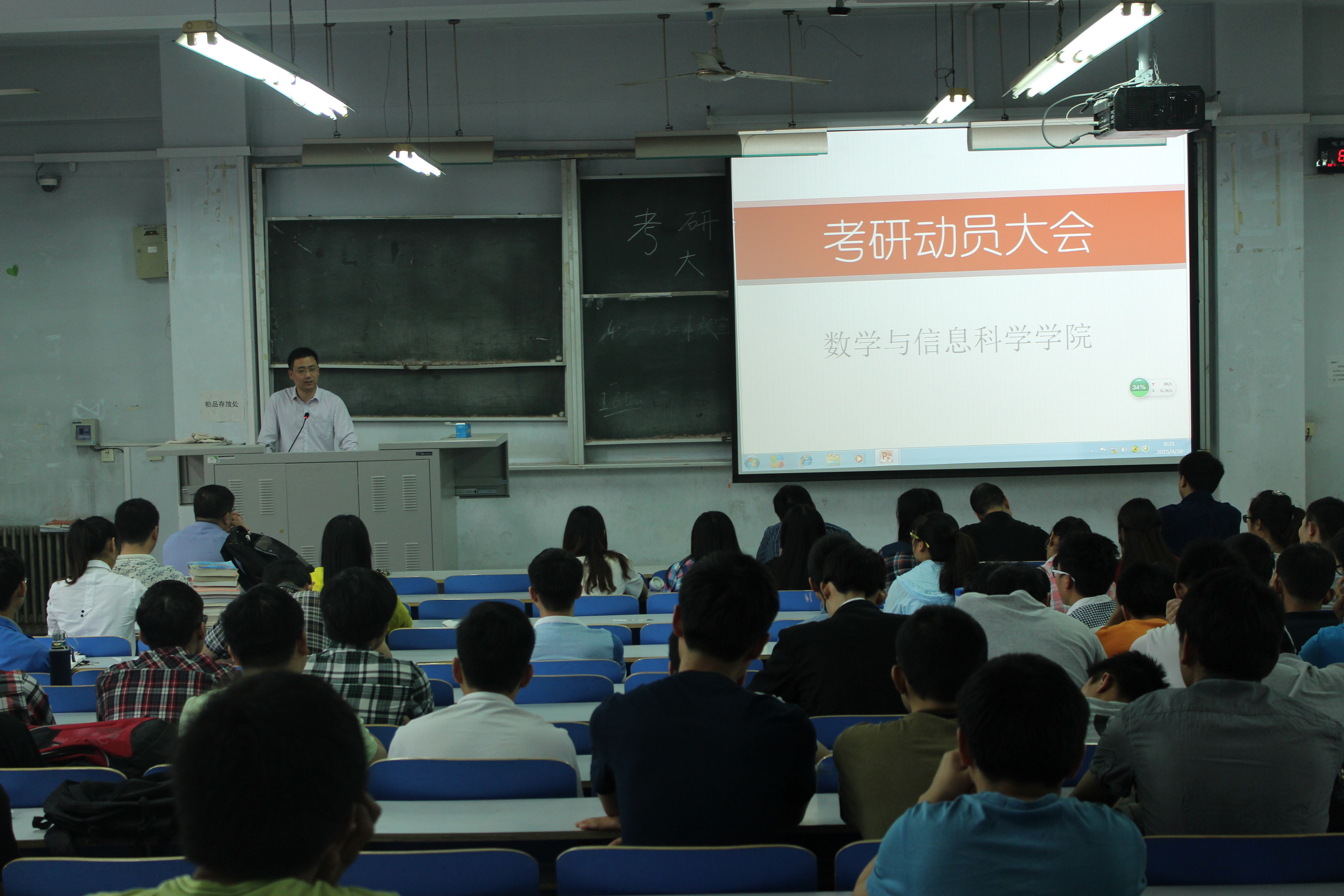为动员更多同学加入考研队伍,鼓励同学们继续学习深造,4月30日上午,数学与信息科学学院在东一楼218教室举行了考研动员会。学院党政领导、专业系主任和2012级全体同学参加了此次动员会。动员会由党总支副书记张阳老师主持。