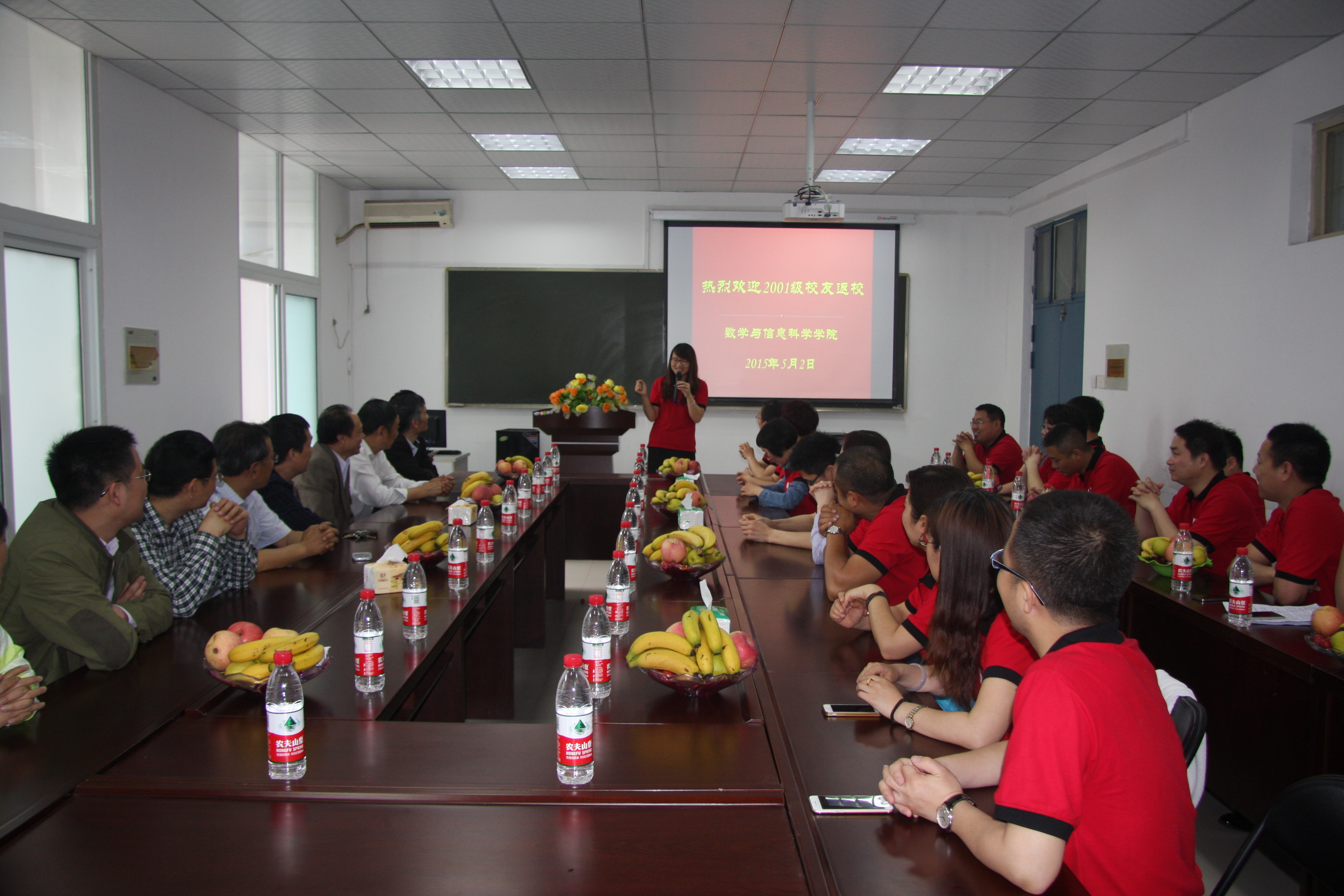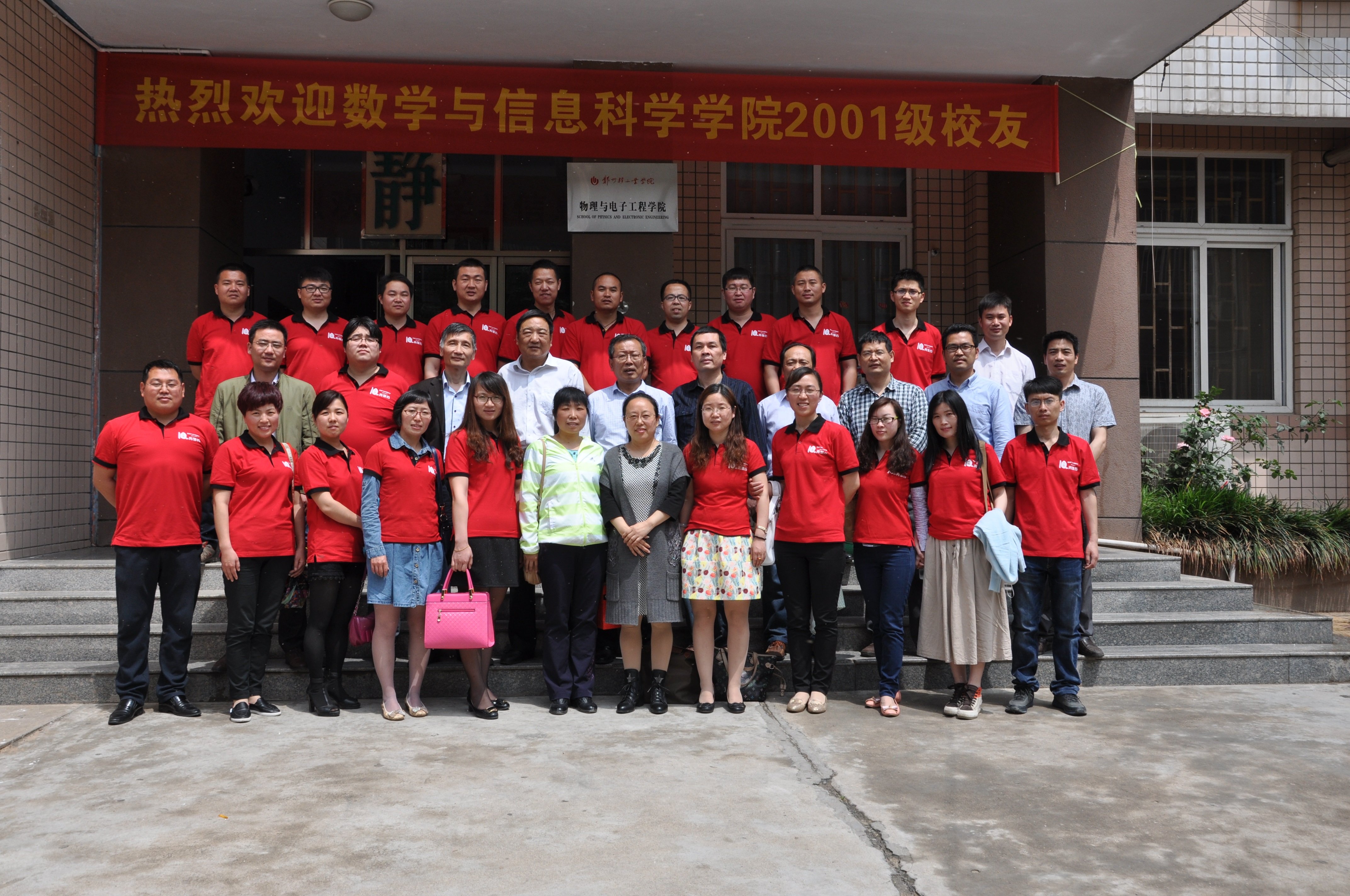 2015年5月2日上午,数学与信息科学学院2001级校友回到阔别已久的母校,喜聚东一楼216楼会议室,共庆毕业十周年,忆往事谈今朝,展望美好未来。数学与信息科学学院党政领导班子成员和部分任课教师出席了此次聚会。