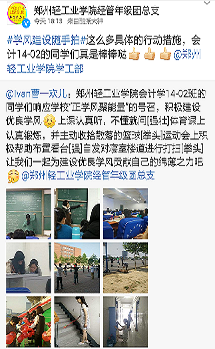 此次活动的顺利开展,既加强了学风建设,弘扬了美德善行,又监督了不文明行为,鼓励了广大学生从小事做起,从自身做起,端正学习态度,提高自身综合素质水平和思想道德修养,传递青春正能量,为进一步推动我校学风建设贡献自己的力量。